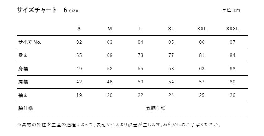 お手持ちのTシャツと寸法表でご確認の上、