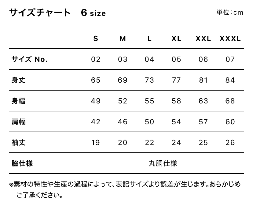 お手持ちのTシャツと寸法表でご確認の上、