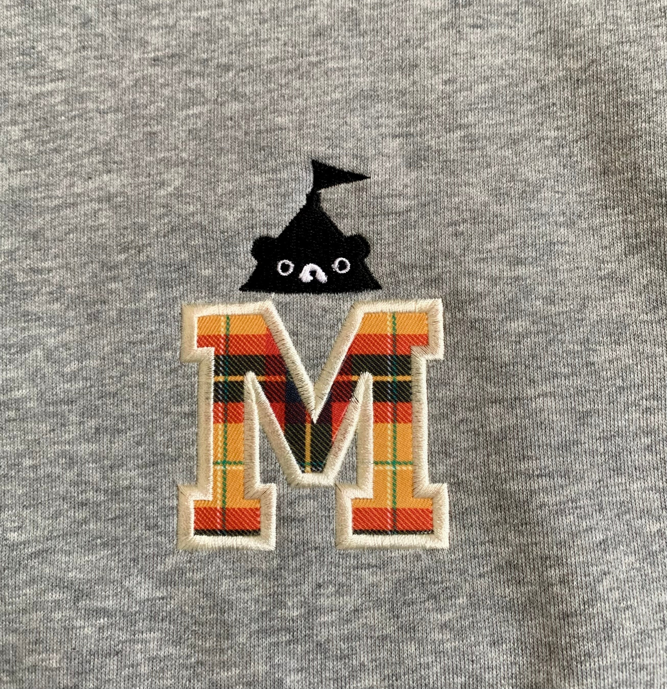 左胸にはmonosoのМとテントくんの刺繍をあしらい、Mのロゴ部分にはチェック柄の別生地を使用し、アクセントをプラスしました