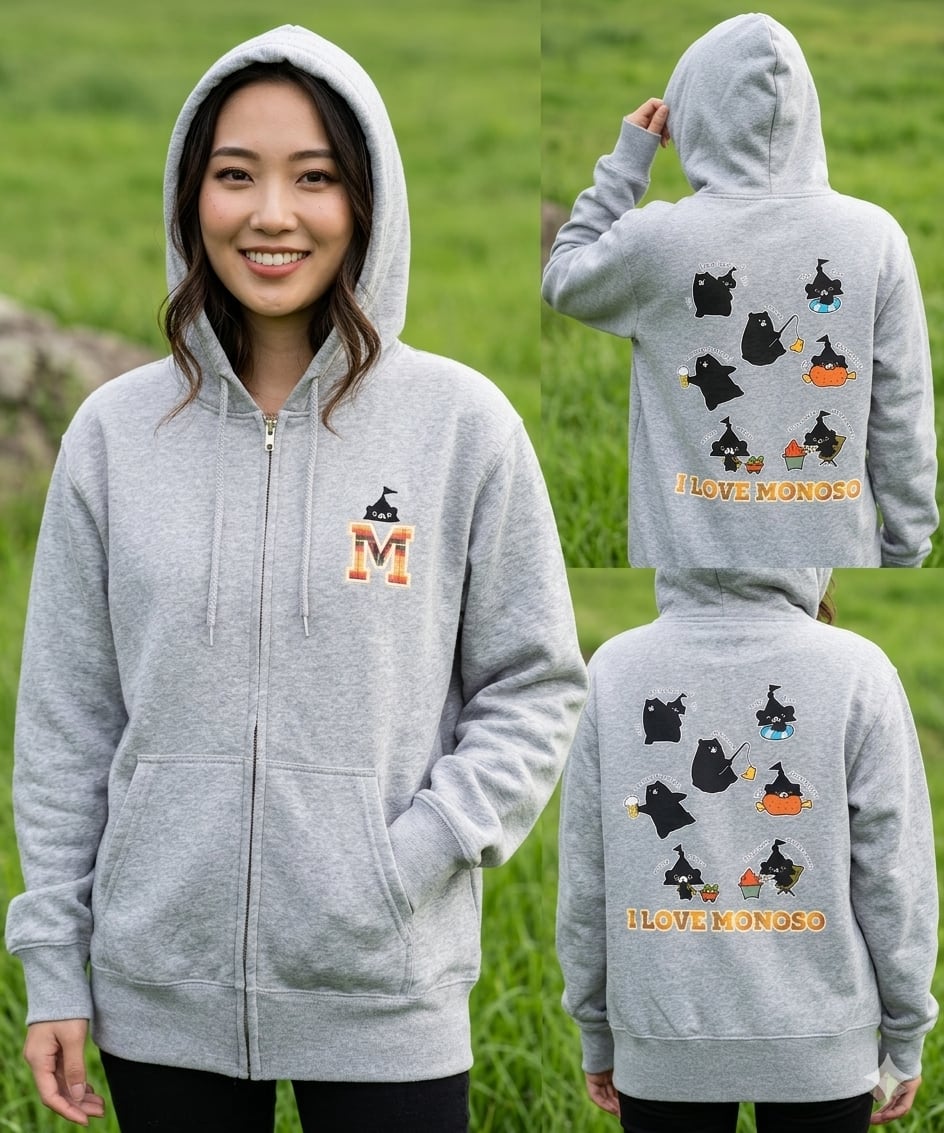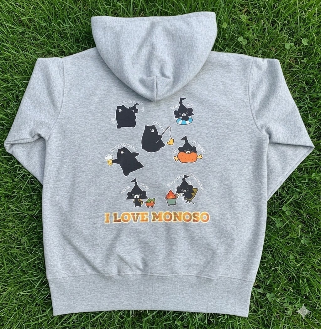 背中には色々なテントくんやお父さんをプリントし、monoso好きなことをアピール出来る1枚です♪