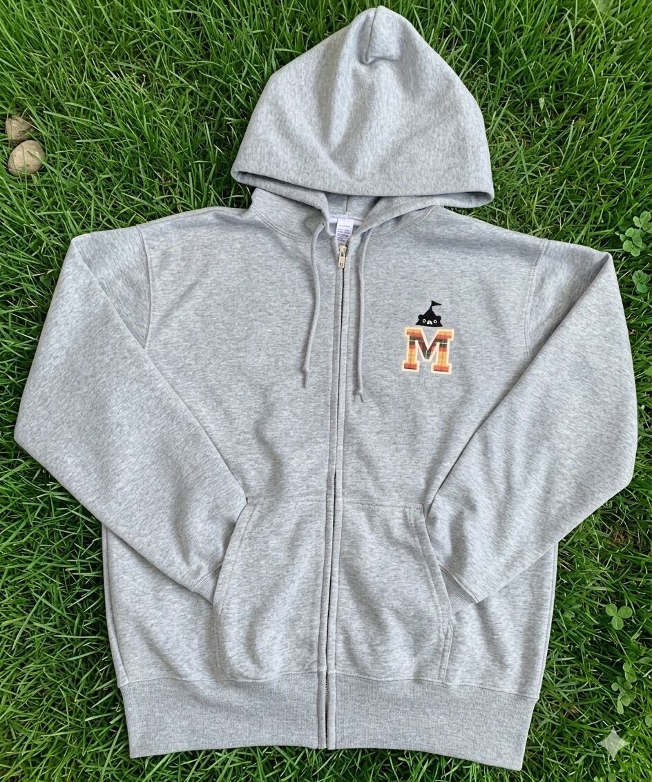 左胸にはmonosoのМとテントくんの刺繍をあしらい、Mのロゴ部分にはチェック柄の別生地を使用し、アクセントをプラスしました