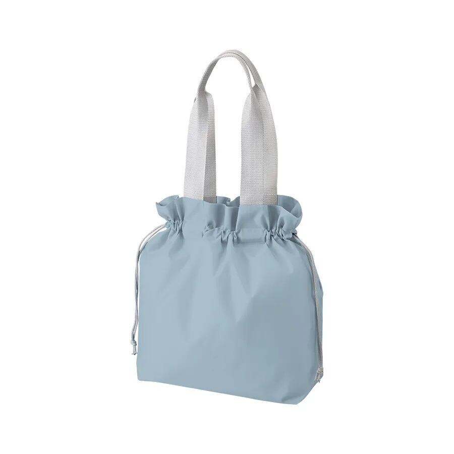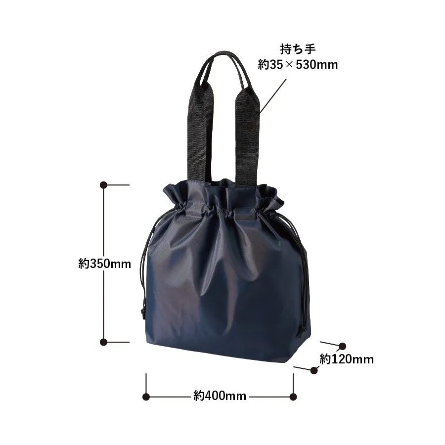 口元のフリルデザインがポイントの巾着タイプのポリエステルトートバッグです